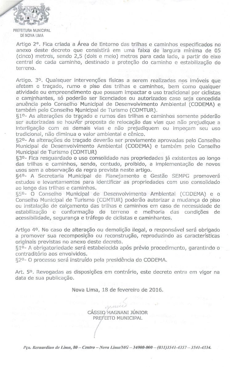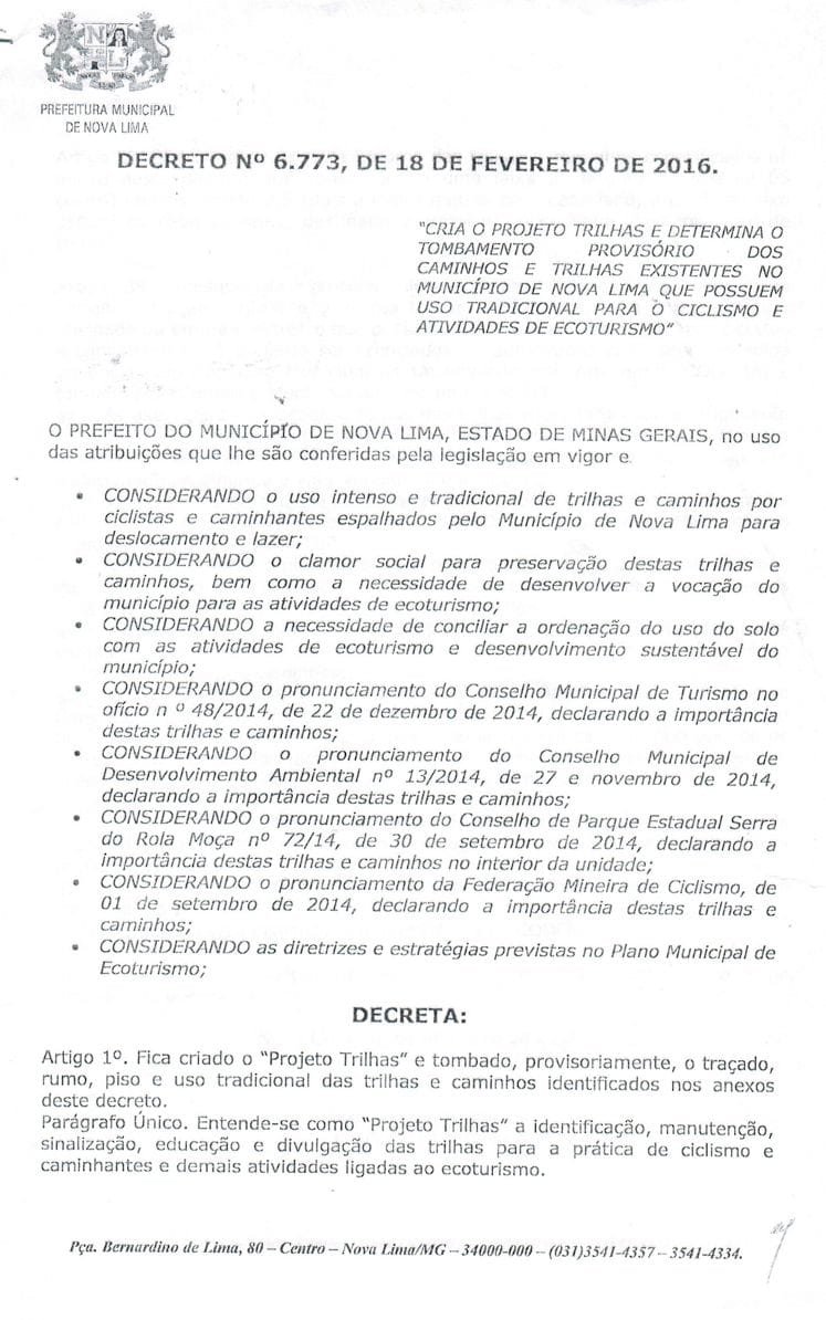 Ao longo dos anos, com a participação de diversos parceiros, contribuímos para conquistas fundamentais que hoje representam grandes legados para a comunidade de Nova Lima e região. Entre essas conquistas, destaca-se nossa atuação na articulação e proposição da iniciativa que resultou no Decreto Municipal nº 6.773, de 2016, que determina o tombamento de mais de 380 km de trilhas e caminhos históricos em Nova Lima, garantindo sua proteção legal para as futuras gerações.