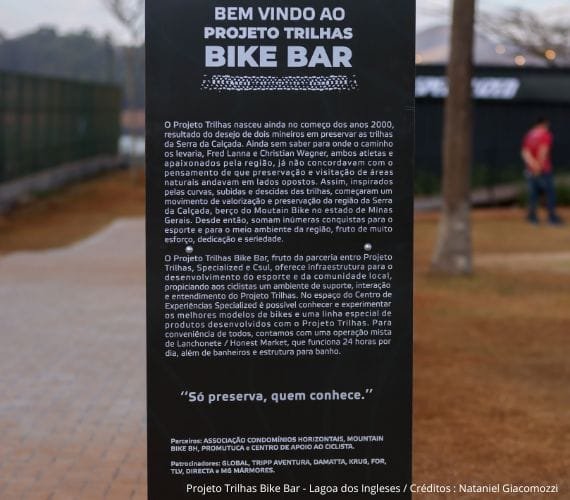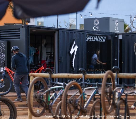 O Projeto Trilhas Bike Bar nasceu da parceria visionária entre o Projeto Trilhas, a Specialized e o Projeto CSul, o maior empreendimento de desenvolvimento urbano sustentável da América Latina. Juntos, criamos um centro de experiência e apoio em uma região com vocação natural para o esporte. Atualmente, o espaço é operado em parceria com a Krug Bier e Global Bicicletas.